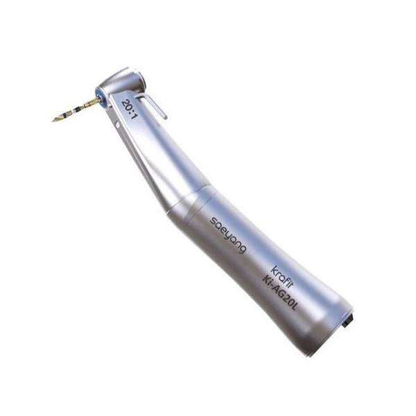 آنگل موتور ايمپلنت، به صورت اپلتيك بلبرينگ پوش باتن KI-AG20 و از نوع آب از خارج است. در نتيجه بايد توجه داشته باشيد كه آب به داخل دستگاه وارد نشود. ريخته شدن آب به داخل دستگاه در اغلب اوقات باعث سوختن برد اصلي آن خواهد شد. پس دقت كار دندانپزشك در هنگام استفاده از موتور ايمپلنت MARATHON مدل KI-20 از اهميت بالايي برخوردار است.