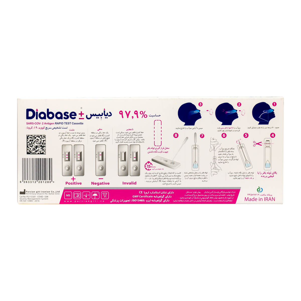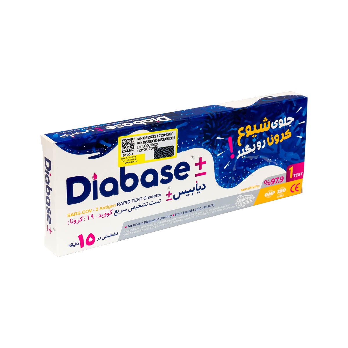 کیت تشخیص سریع کرونا برند دیابیس در بسته های تک عددی شامل سواپ استریل داکرون نازوفارنکس, کاست تست، قطره چکان و لوله بافر استخراج عرضه می گردد.