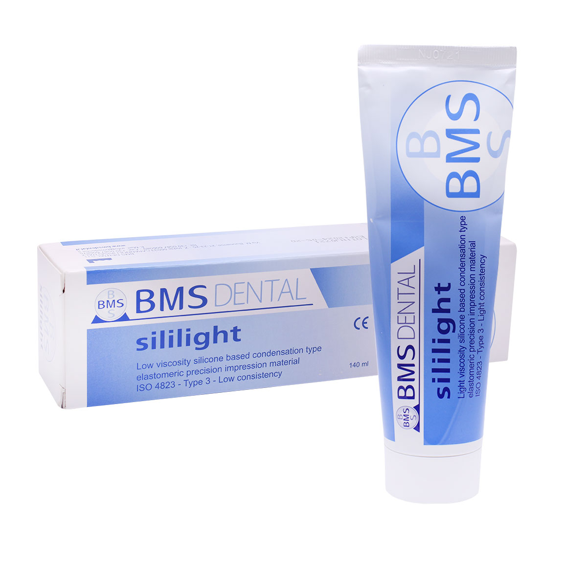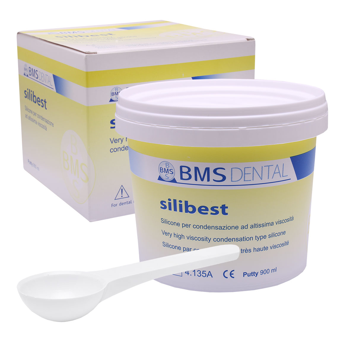 ست قالب گیری تراکمی برند BMS Dental در بسته های حاوی (پوتی) Silibest 900 میلی لیتری، (واش لایت بادی) Sililight 140 میلی لیتری و (اکتیواتور) Catalyst Gel 60 میلی لیتری عرضه می گردد.