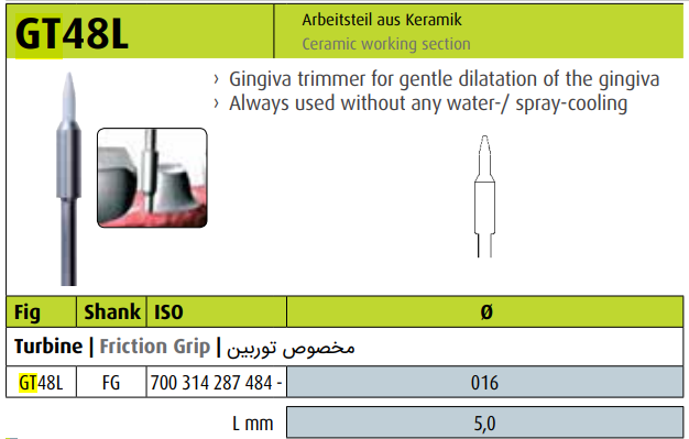 فرز سرامیکی تریمر لثه GT 48L FG 016 برند Jota