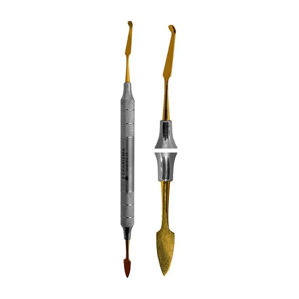 یکسر آن اسپاتول خمیده و سر دیگر آن برنیشر است.