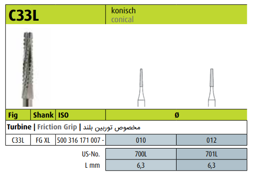 فرز کارباید کونیکال بلند توربین – Dental Carbide Burs C33L FG XL