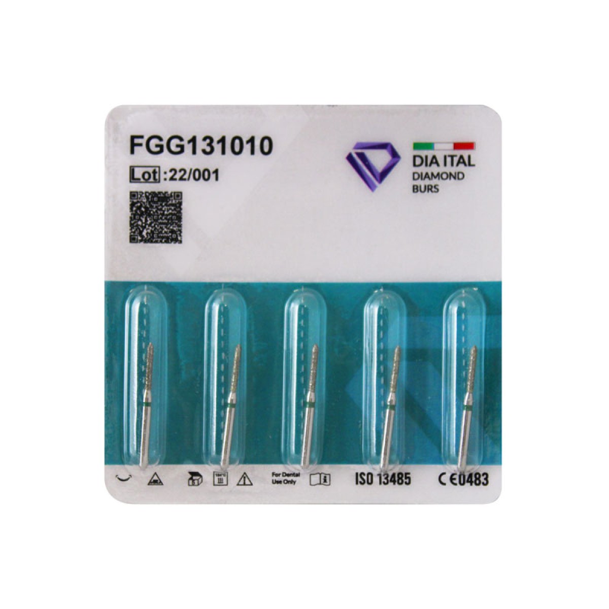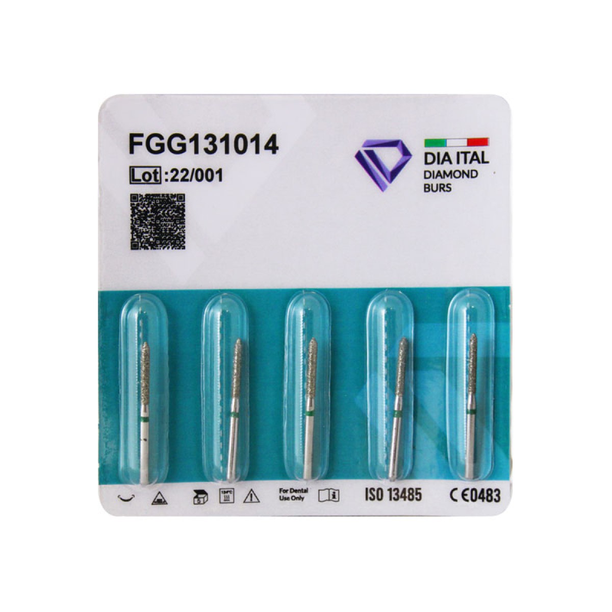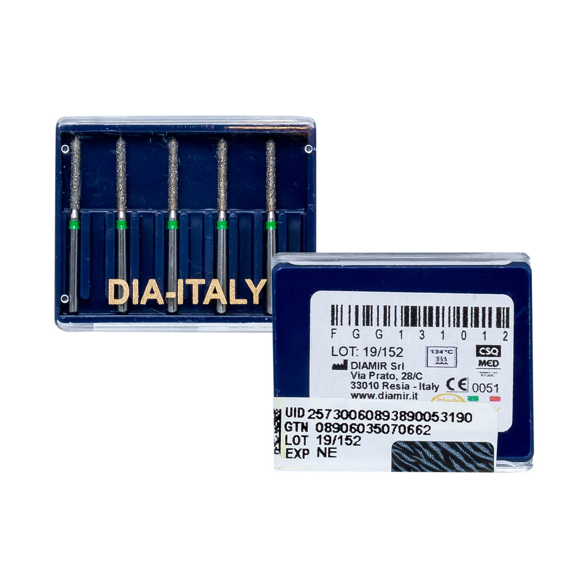 فرز الماسی مدل استوانه‌ای با نوک مورب توربین برند دیا ایتالی در رنگ سبز و سایزهای 012، 014 و بسته‌ های 5 عددی عرضه می‌گردد.