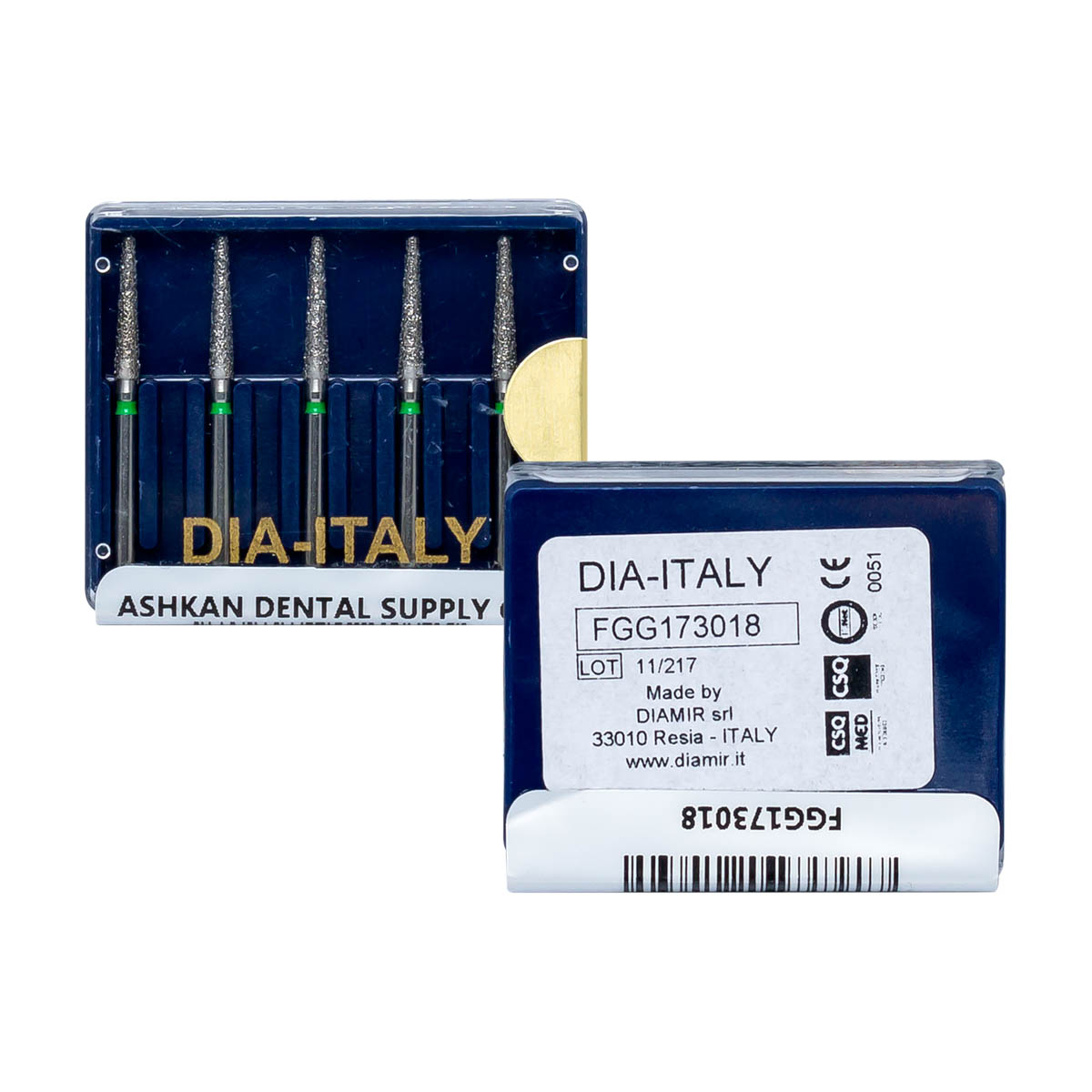 فرز الماسی مدل مخروطی ته صاف توربین برند دیا ایتالی در رنگ های سبز و سایز 018 و بسته بندی 5 عددی عرضه می گردد.
