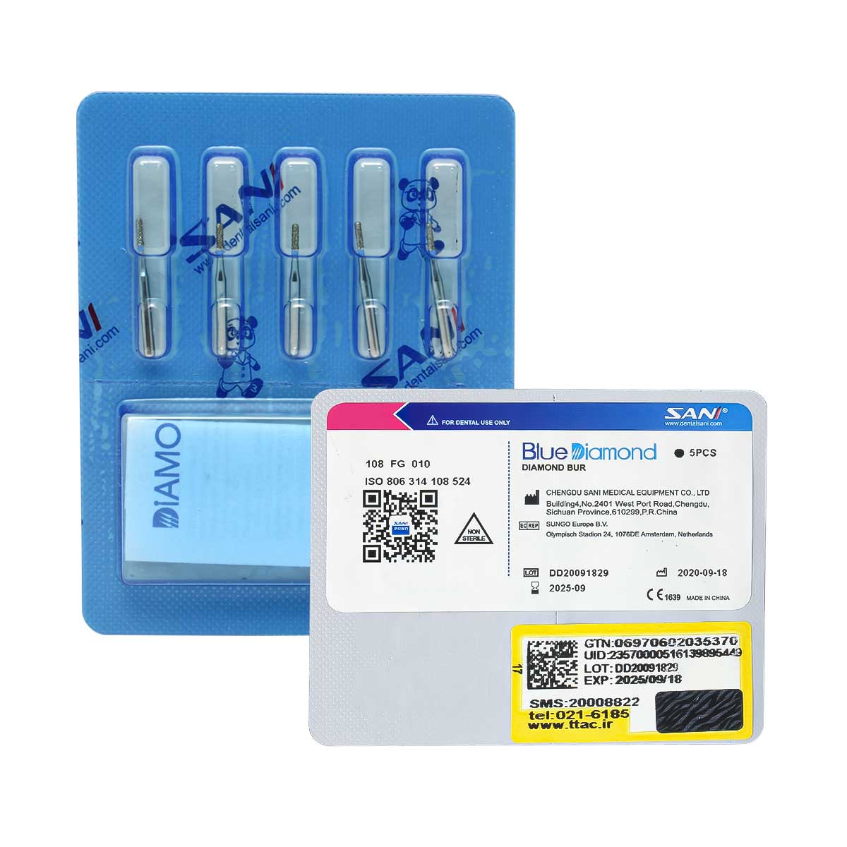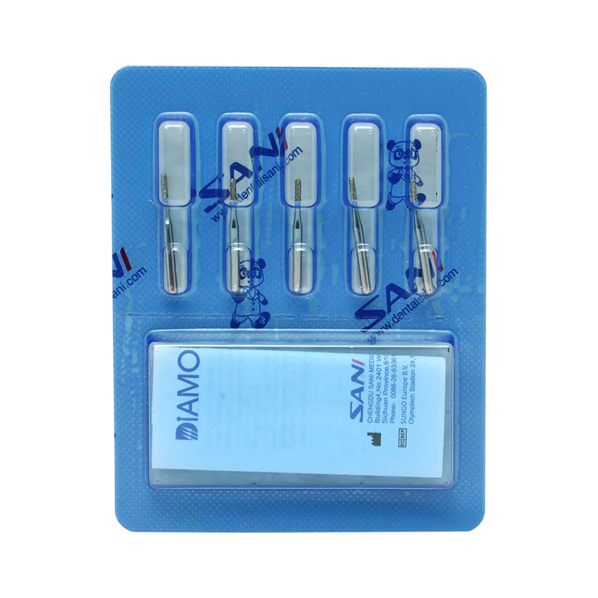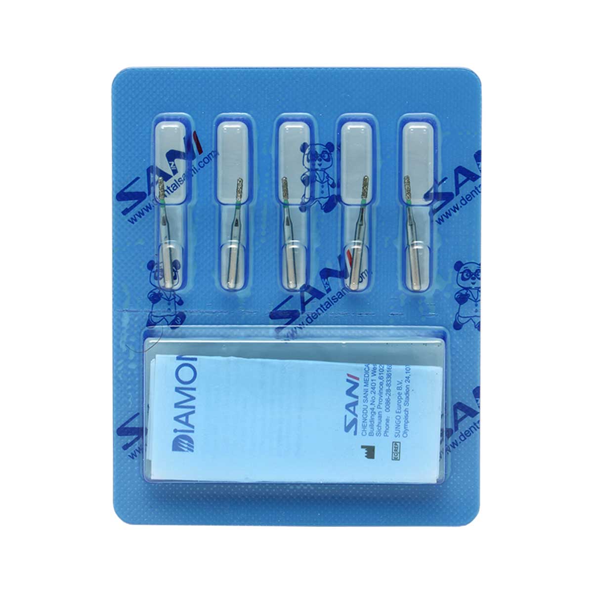 خرید فرز الماسی مدل استوانه ای ته صاف توربین 5 عددی برند Sani از تجهیزات دندانپزشکی دیجی سرنگ پلاس