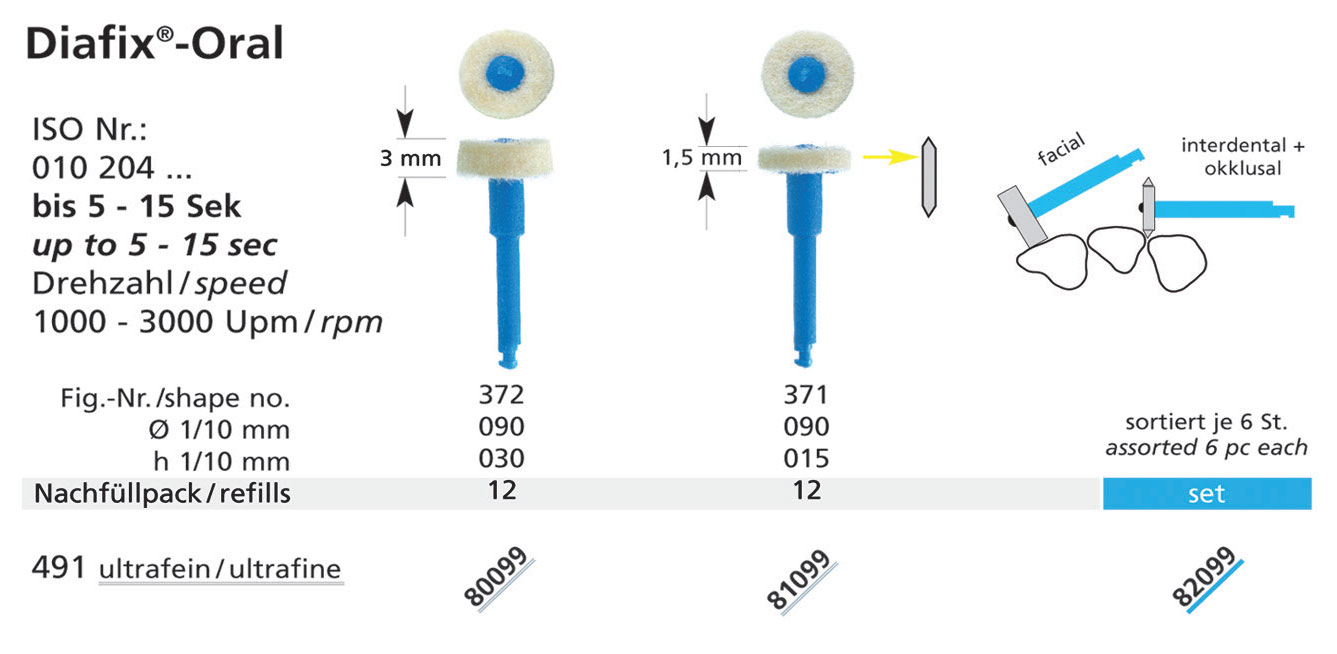 دیسک نمدی DiaFix Oral برای پرداخت مناسب است و در دو نوع ضخامت 1.5 و 3 میل و در بسته بندی 12 عددی عرضه می گردد.