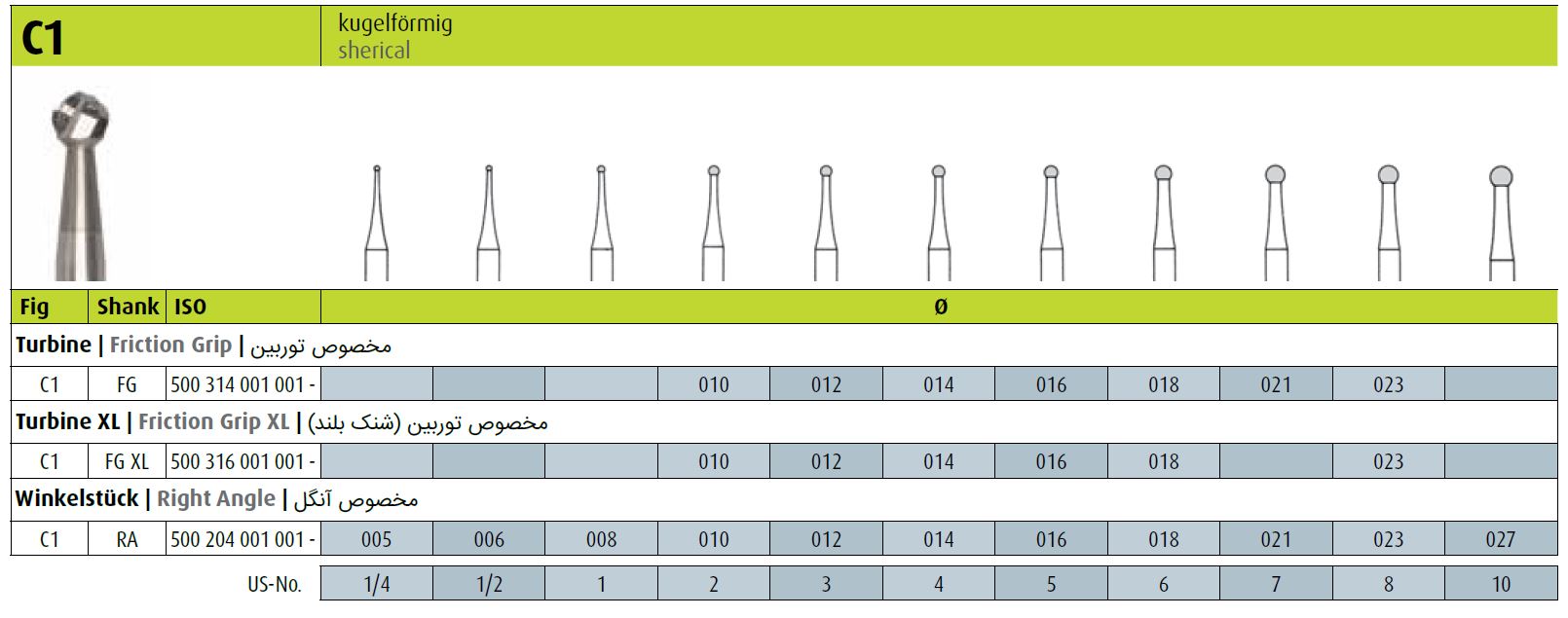 – سایز سر فرز: 010، 014، 018، 021، 023، 027
