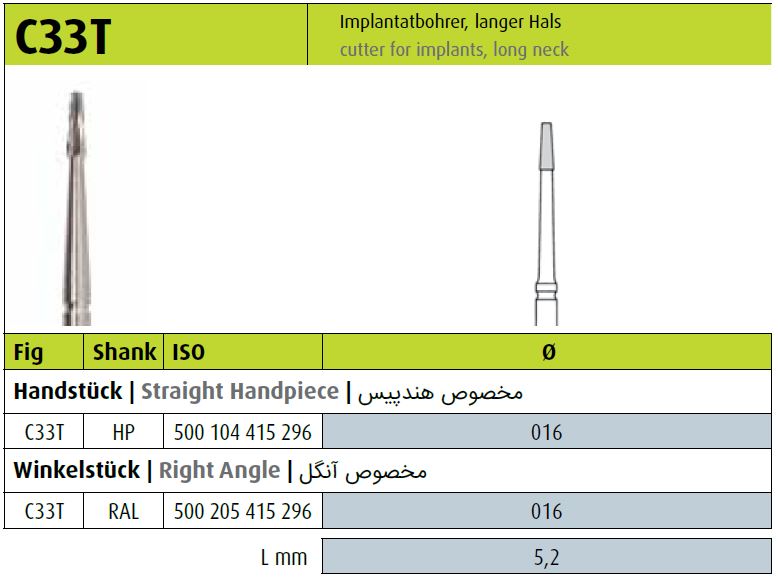 فرز کارباید مخصوص هندپیس – Diamonds Carbides Abrasives C33T HP 016
