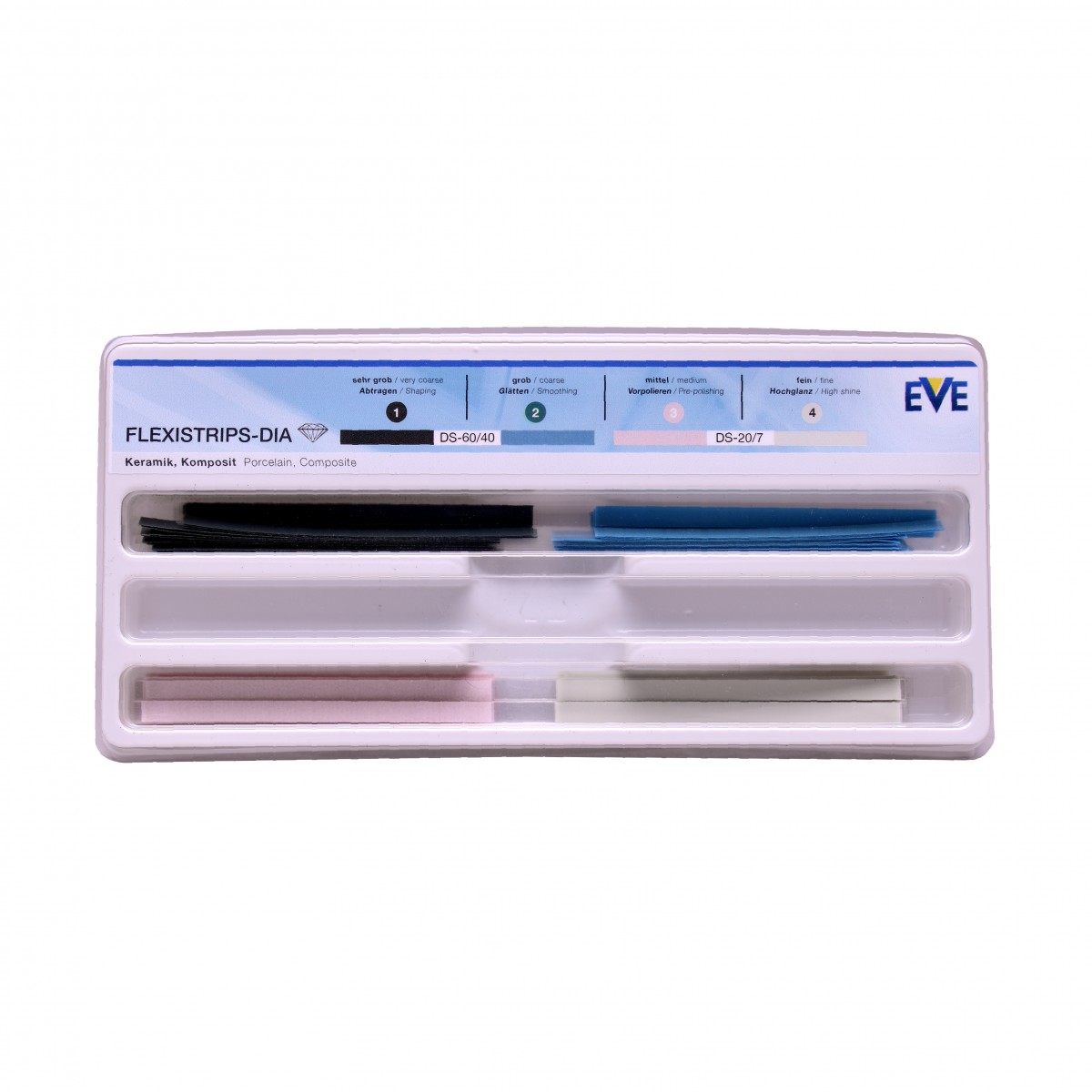 این محصول دارای نوارهای انعطاف پذیر برای پالیش سطوح بین دندانی میباشد.