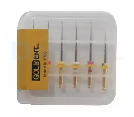 فایل روتاری نیکل-تیتانیوم دارای استحکام، سفتی و قابلیت ارتجاعی متفاوتی است تا الزامات مختلف مهیا سازی کانال ریشه ای را برآورده کند. فایل روتاری آبی گلدنت برای استفاده در دندان های جلویی با خمیدگی ملایم و بخشی از دندان های عقبی سازگار است.