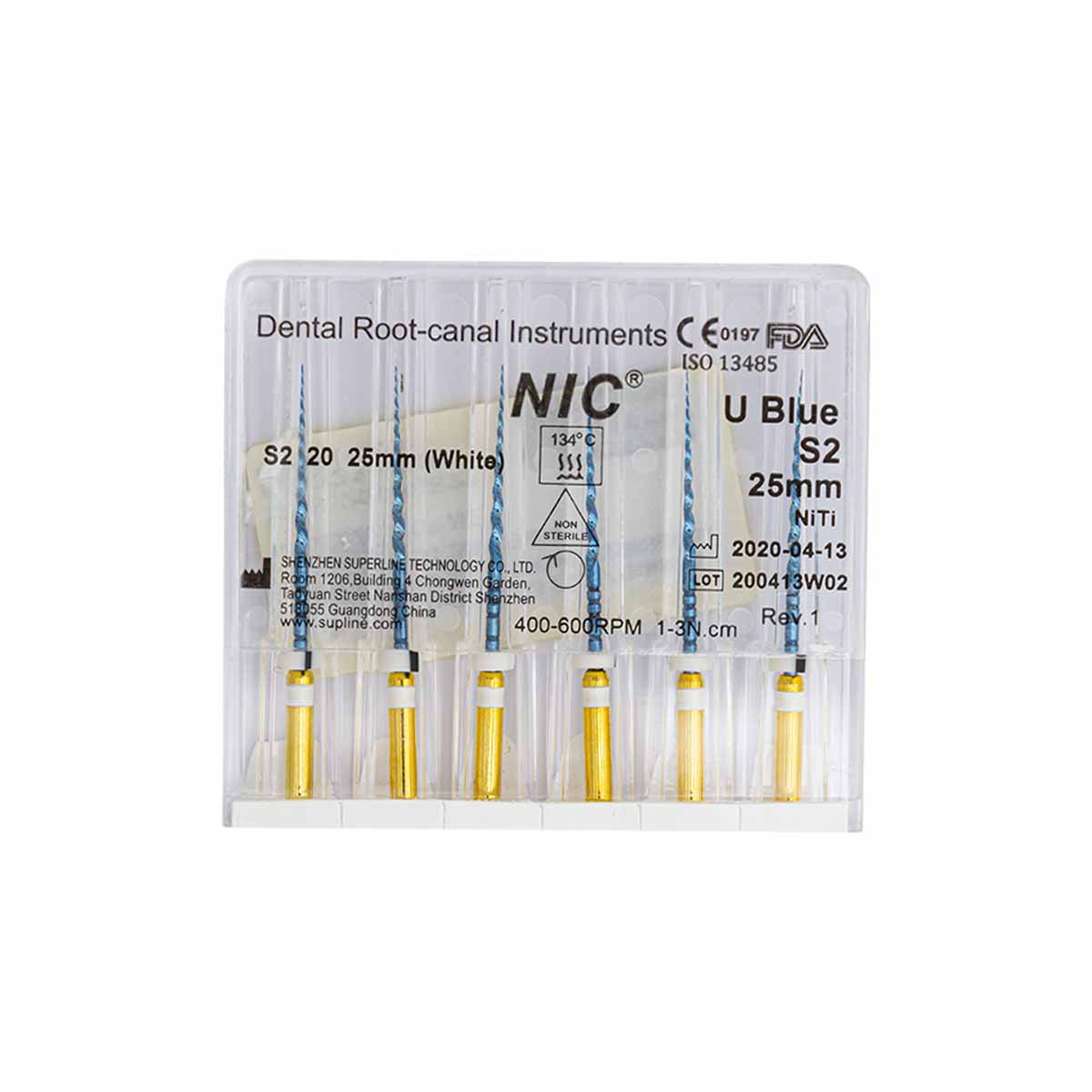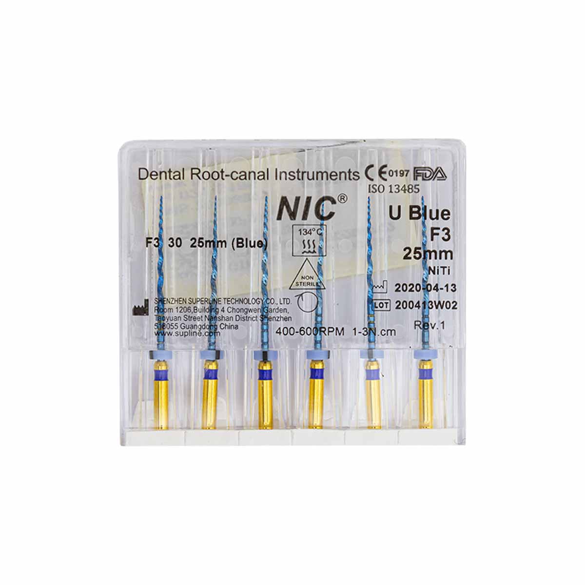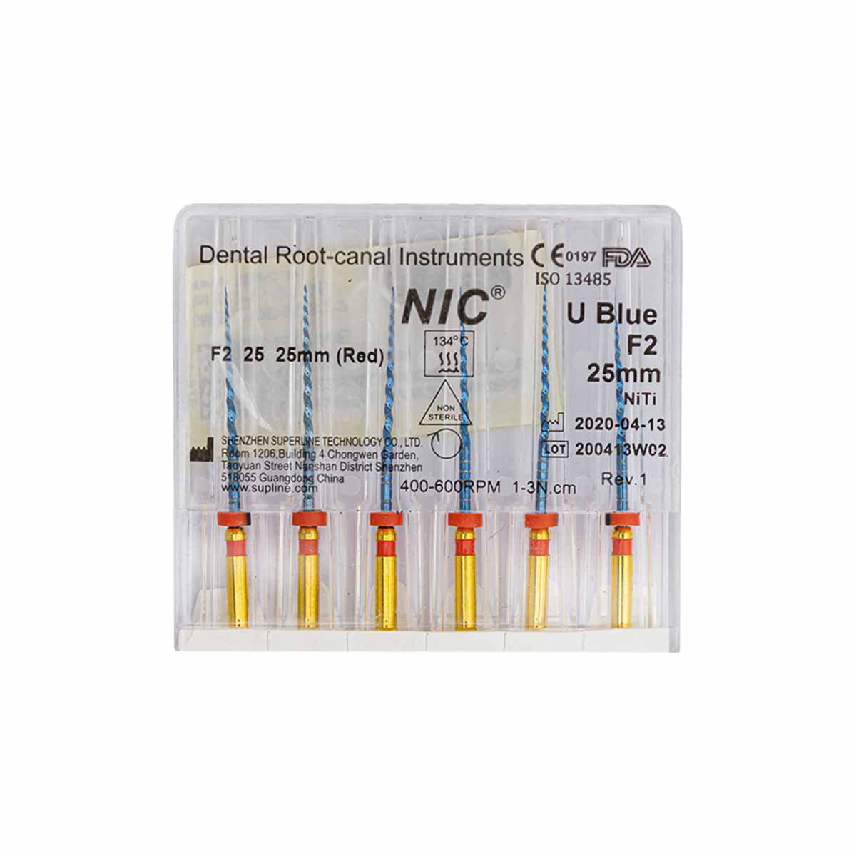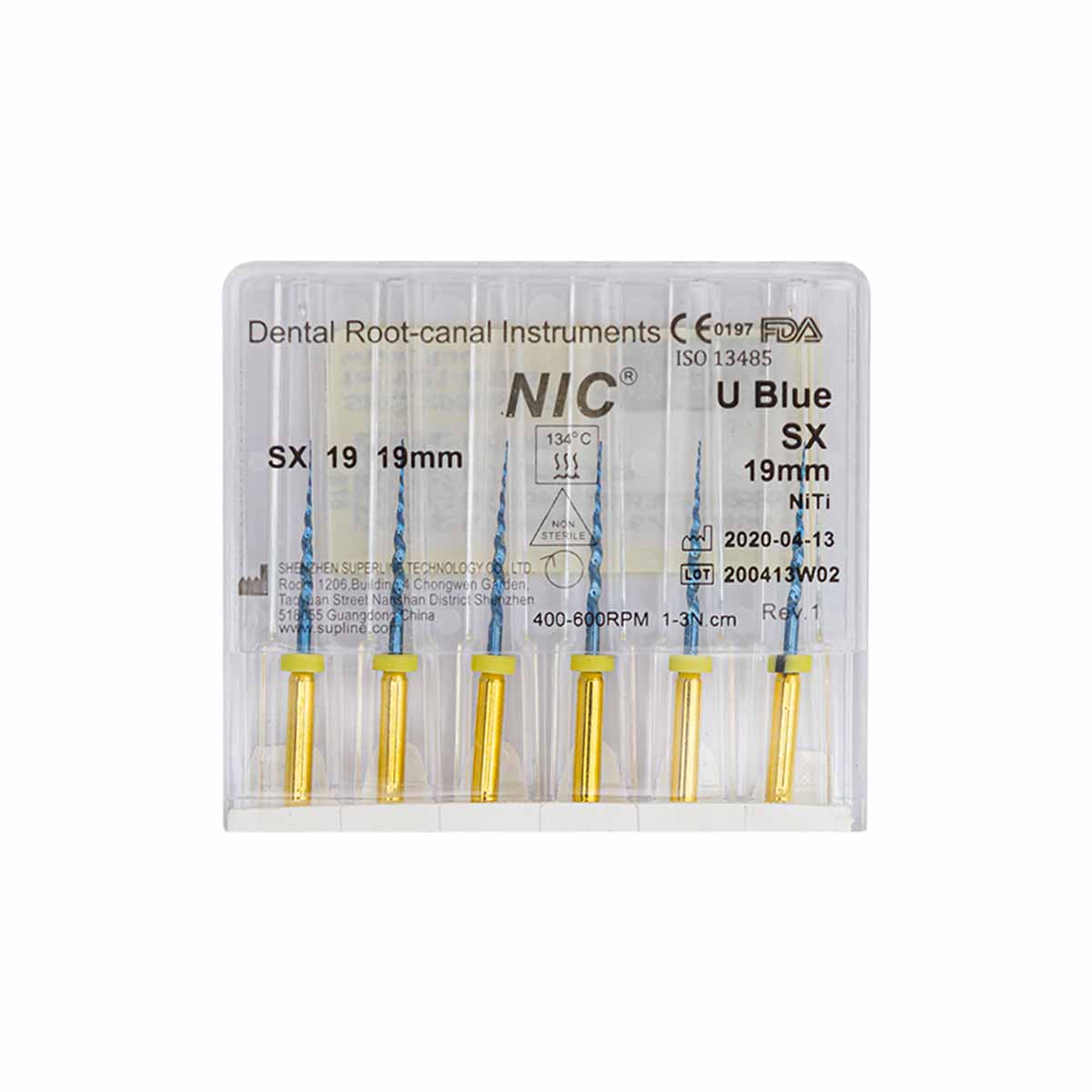 فایل روتاری U Blue برند NIC در سایز SX با طول 19 میلیمتر و سایزهای F1 , F2 , F3 , S1 , S2 , SX-F3 با طول 25 میلیمتر عرضه میگردد.