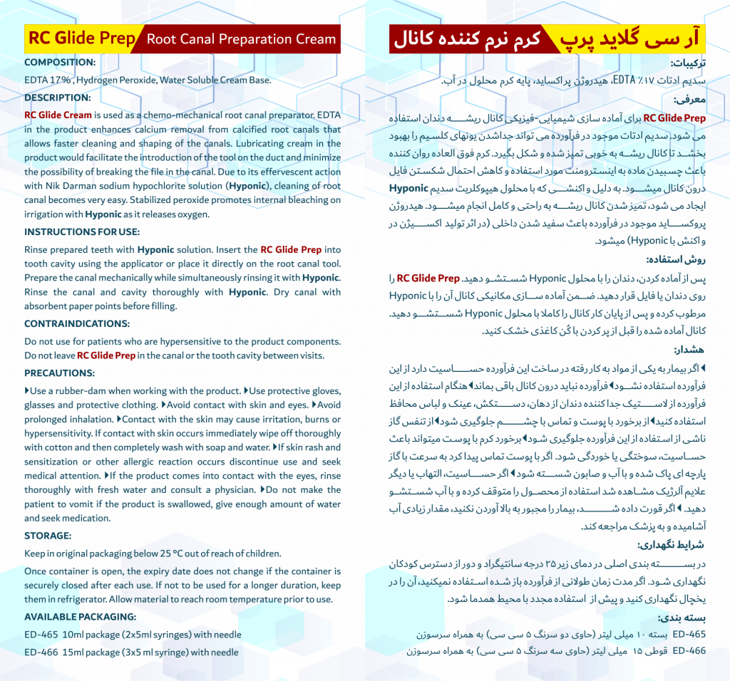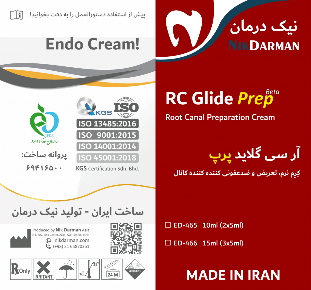 آرسی پرپ برند نیک درمان به صورت ۲ عدد سرنگ ۵ میلی‌لیتر عرضه می‌گردد.