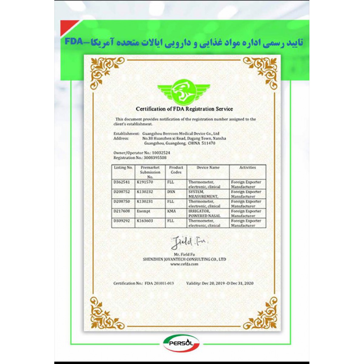 – دارای مجوز رسمی وزارت بهداشت، درمان و آموزش پزشکی و اداره کل تجهیزات پزشکی