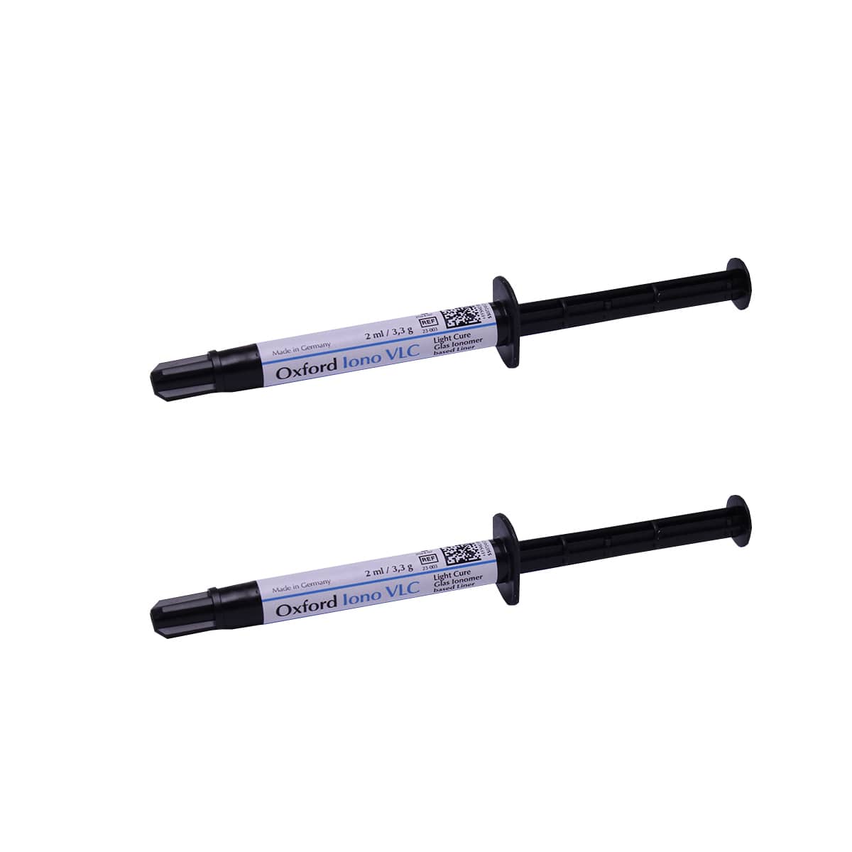 گلاس آینومر لایت کیور برند آکسفورد در بسته های 2 عدد سرنگ 3.3 گرمی عرضه می گردد.