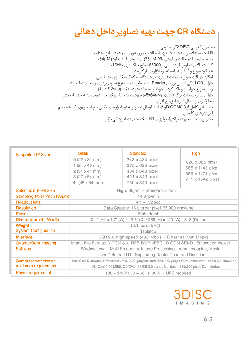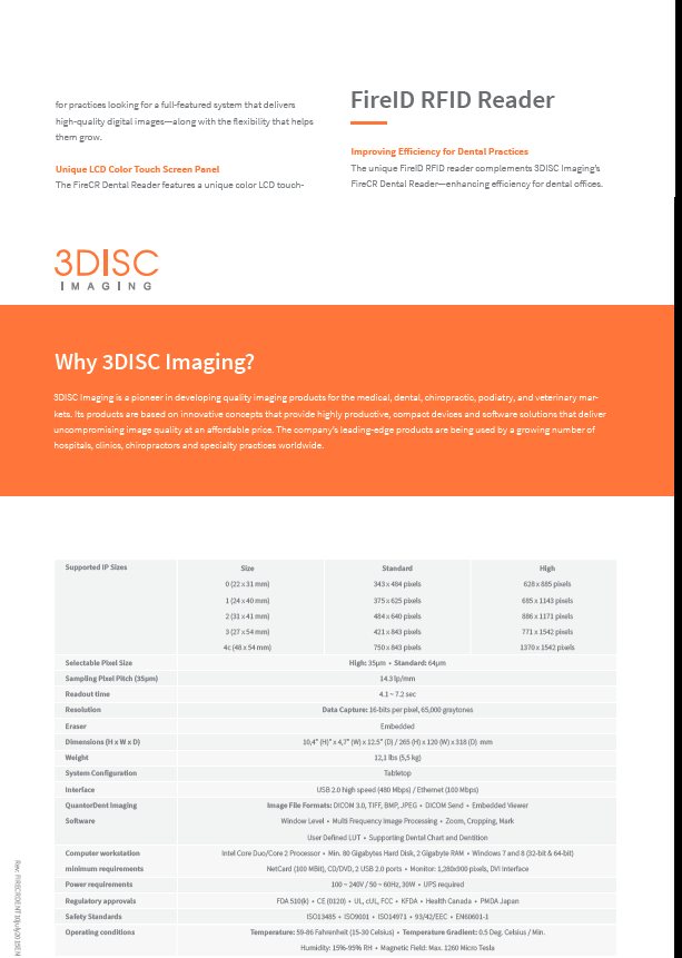 ویژگی های اسکنر فسفر پلیت تری دیسک PSP 3DISC Fire CR :