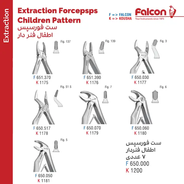 ست فورسپس اطفال فنردار 7 عددی فالکن Falcon