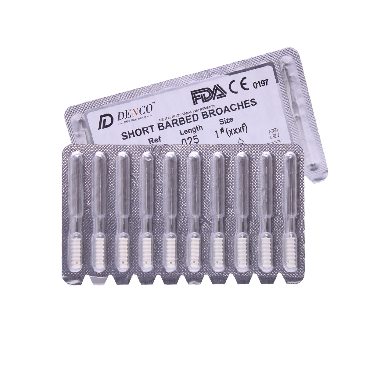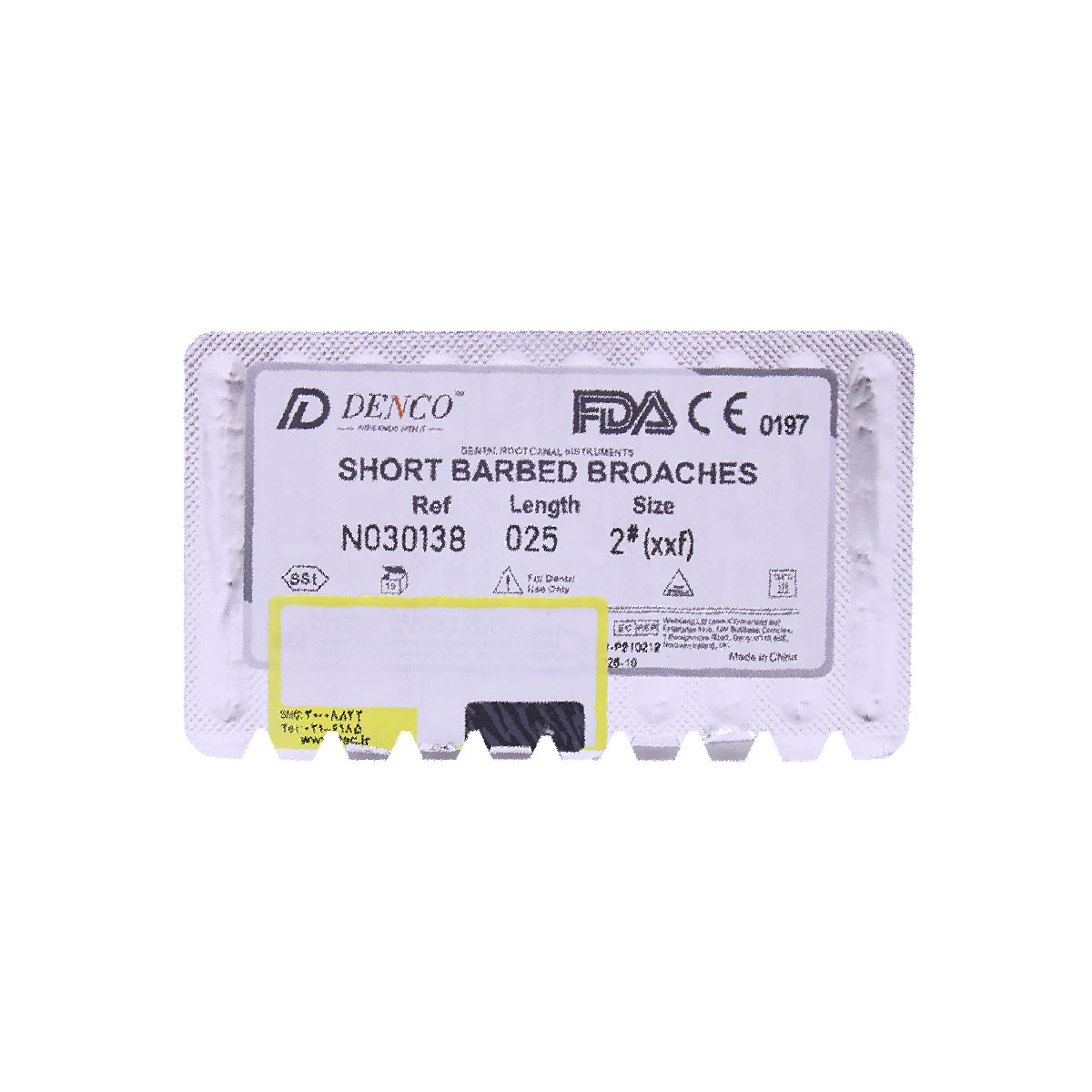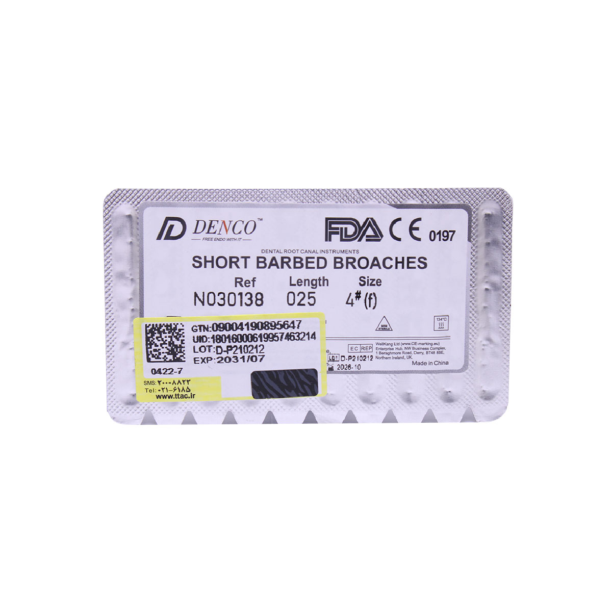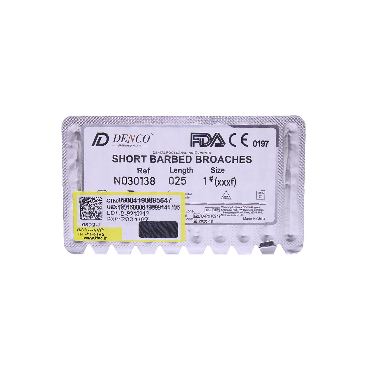 باربروچ برند دنکو با طول 25 میلیمتر و سایزبندی 1-XXXF، 2-XXF، 3-XF، 4-F، 5-M، 6-C در بستهبندی 10 عددی عرضه میگردد.