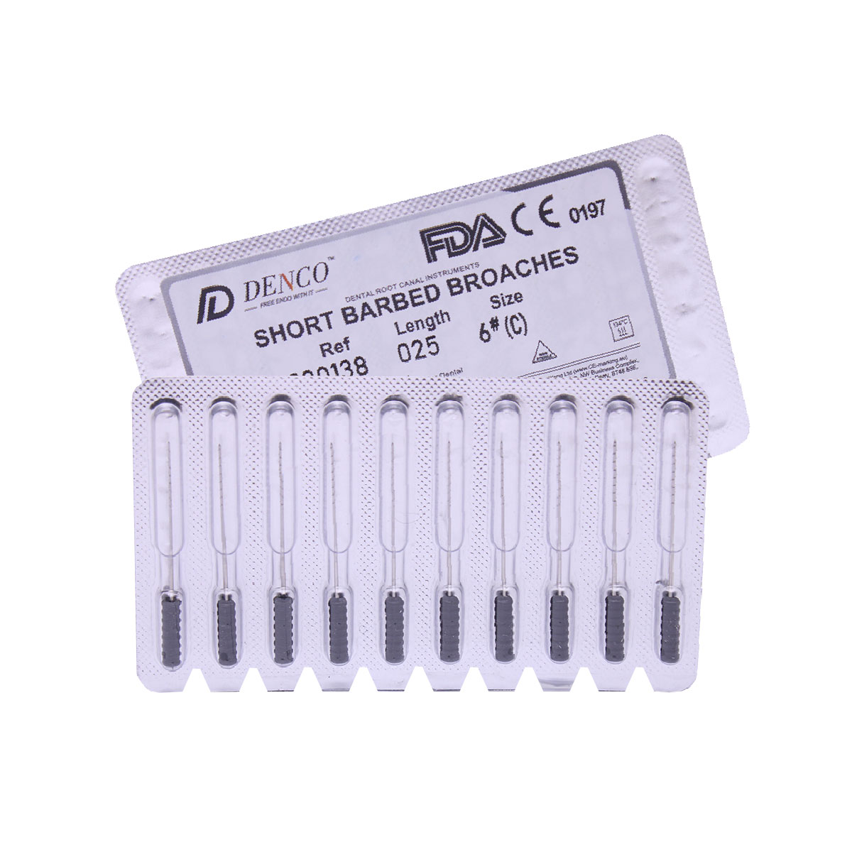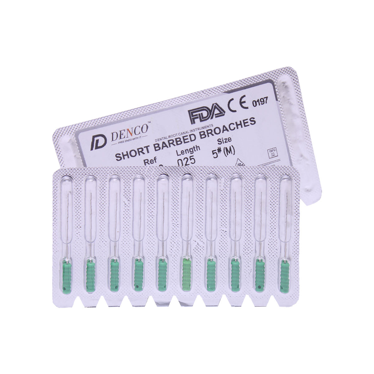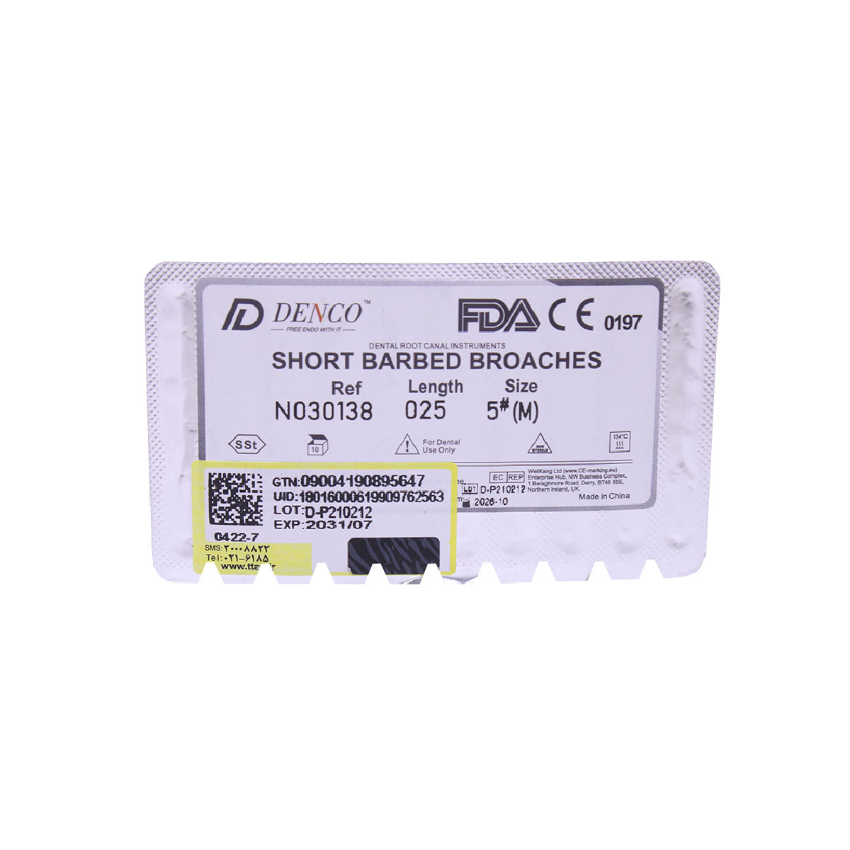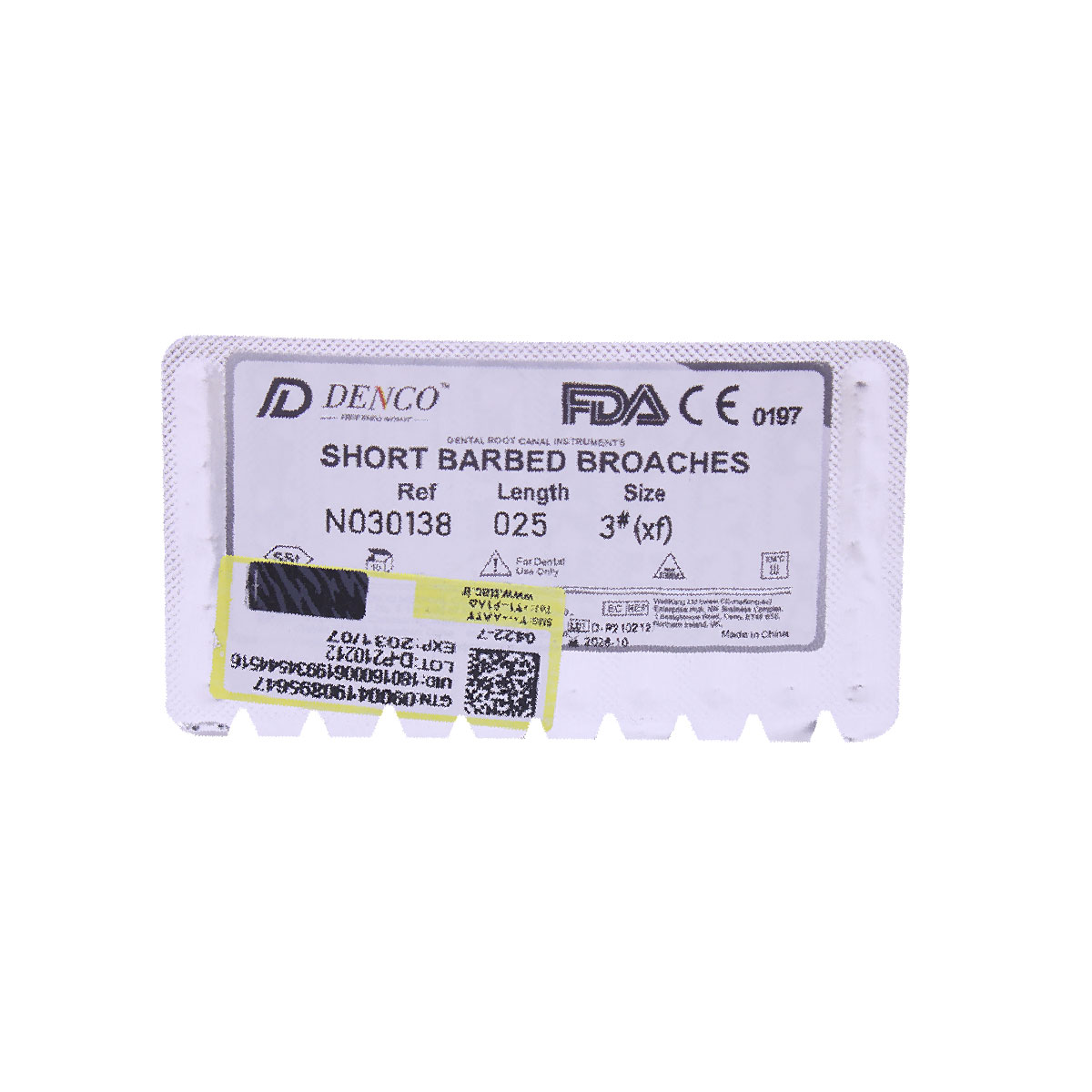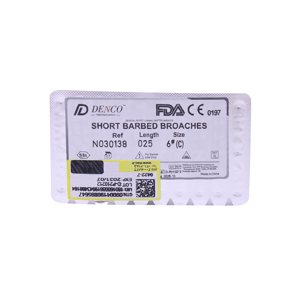 باربروچ برند دنکو با طول 25 میلیمتر و سایزبندی 1-XXXF، 2-XXF، 3-XF، 4-F، 5-M، 6-C در بستهبندی 10 عددی عرضه میگردد.